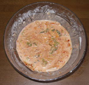 そこに、チヂミのタネを入れます。