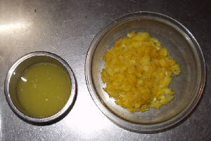 果汁を絞り、皮と共にビンなどに入れ、これに砂糖1カップ、蜂蜜1カップを加えます。
