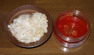 準備する物は、ご飯とキムチの漬け汁だけでも充分ですが、キムチが少し残っている時は細かく刻んで加えると、尚美味しくなります。