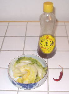 白菜のお漬物、鷹の爪(本数はお好みで)、ごま油
