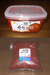 テンジャン味噌と粉唐辛子(あらびき)のもの。